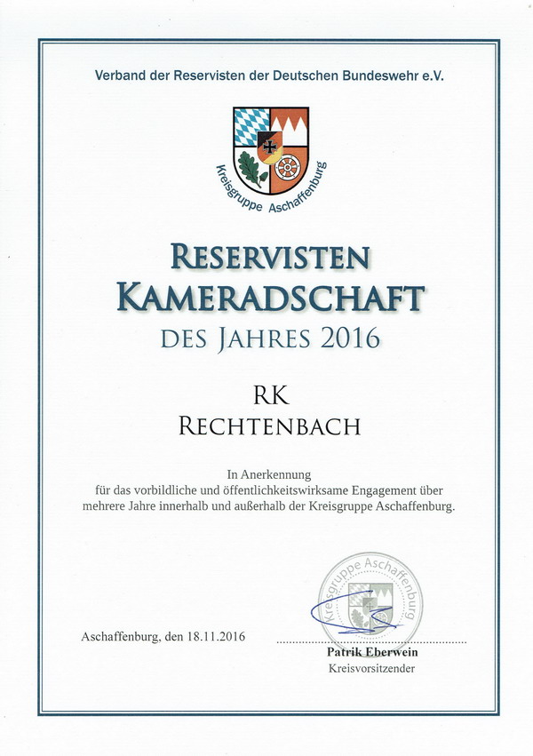 Die Reservistenkameradschaft Rechtenbach ehrte bei ihrer Weihnachtsfeier,
